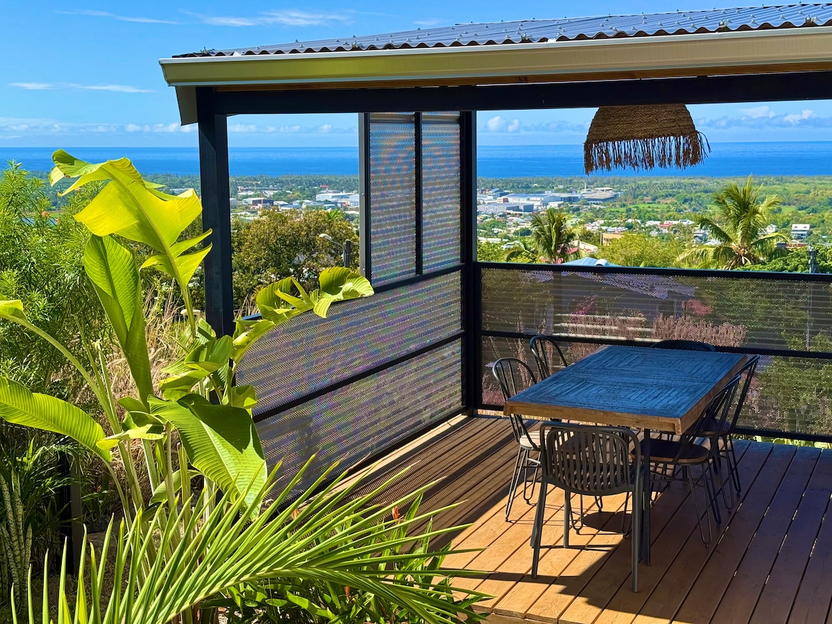 En la costa oeste, entre el mar y la montaña, en un gran jardín tropical exuberante con vistas al océano, alojamiento en la naturaleza con entrada independiente para 2 personas. Inodoros secos y ducha al aire libre debajo de los papiros gigantes. Podrás preparar tus comidas y comer en la cocina en medio de la vegetación, en la terraza con vistas al mar... o en cualquier otro lugar del jardín. Barrio muy tranquilo. Alquilamos nuestras bicicletas eléctricas. Préstamo de 2 pares de aletas, máscara, tubo y juegos de mesa variados.