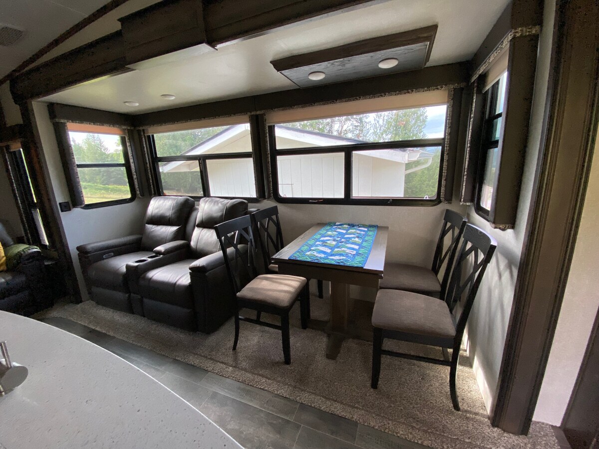 Escápate a un espacioso y acogedor transportador de juguetes, con una ubicación céntrica entre Packwood, Morton y el histórico monte St. Helens. Este transportista de juguete cuenta con un bdrm queen, una litera doble oculta perfecta para un adulto joven, una sala de estar, completa con un sofá reclinable de cuatro asientos con asientos climatizados y de masaje, y una cálida chimenea eléctrica para establecer el estado de ánimo. Una habitación separada con literas dobles, dos sofás, una mesa de comedor y un medio baño privado ideal para familias. ¡Disfruta de lo que ofrece el condado de East Lewis!