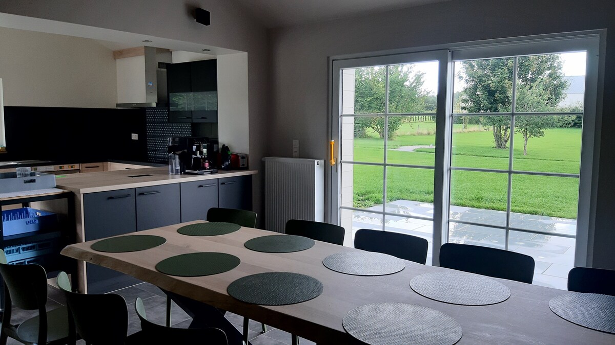 La gîte se instala en el valle de Semois (pequeño pueblo de Vivy en el municipio de Bouillon), recientemente renovado y construido en un pueblo muy tranquilo. Es una mezcla entre el estilo tradicional encantador y las instalaciones modernas: paredes de piedra en el interior, bosques de madera, gran cocina abierta... comedor, dos salas de estar, tres baños, terrazas, un gran refugio de jardín ( 30ares). Posibilidades de estacionar los autos.