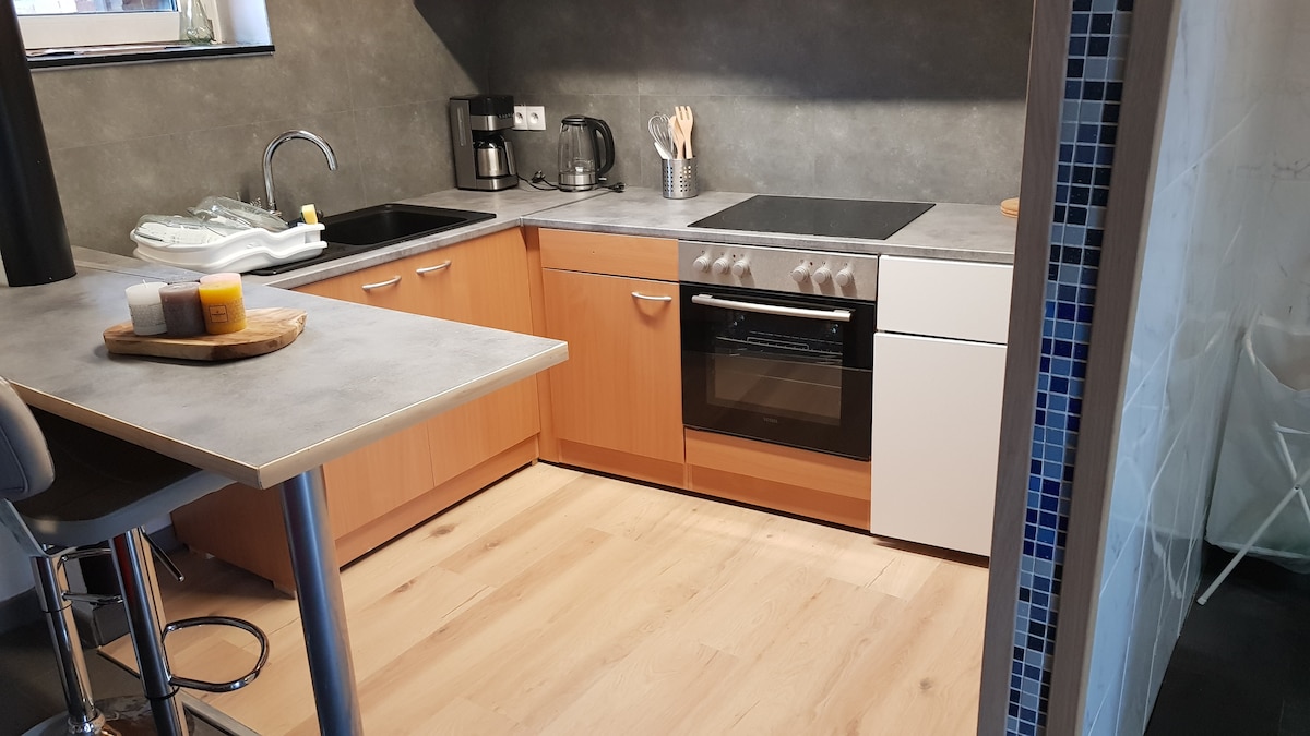 Por favor, escríbeme si tu cita no está disponible. Te esperan 2 hermosas habitaciones, cada una con 1 cama doble (160x200). Además, 1 litera (140x200) y 1 sofá cama muy cómodo (130x200), así como un sofá cama grande (150x200) y la cama doble (160x200) en la habitación del jardín. Además, una cocina moderna, un baño elegante con ventanas y una terraza amueblada. Los objetos privados se reducen al mínimo. A 5 minutos a pie de Eurogress o Tivoli, a 15 minutos del ayuntamiento/catedral.