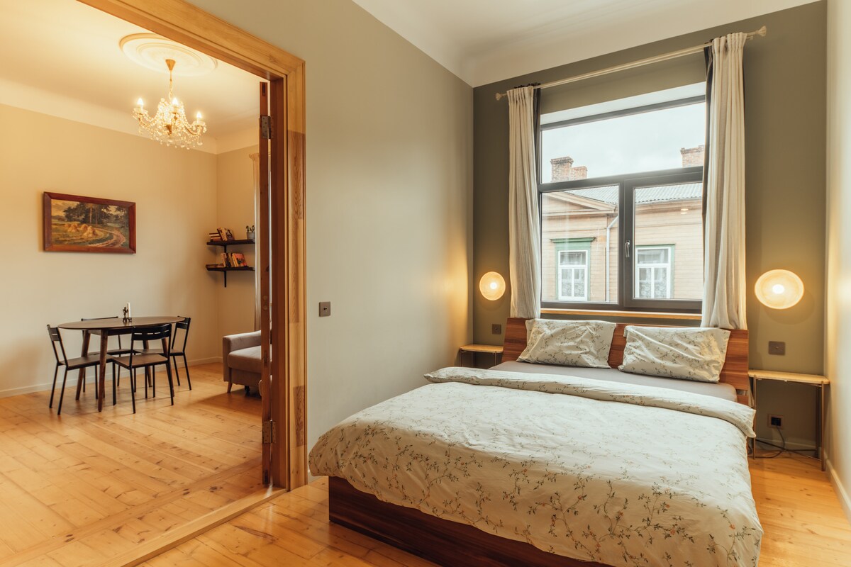 Apartamento de diseño recién renovado en el corazón de Liepāja, perfecto para parejas o viajeros solitarios que valoran el estilo, la comodidad y una ubicación céntrica. El aparcamiento privado, la playa, el parque y el centro de la ciudad están a poca distancia a pie.