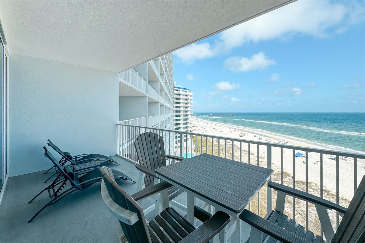¡Bienvenido a Lighthouse 905, su asiento en primera fila en el paraíso de la Costa del Golfo! Organizado por Current Tides, este relajante refugio en el noveno piso se caracteriza por el sol, el aire salado y la vida sencilla. Empiece el día con un café en el balcón, disfrute de las olas y luego relájese en la cómoda sala de estar. La cocina totalmente equipada hace que la hora de la merienda sea muy sencilla, y las suites King ofrecen un ambiente acogedor. Con piscinas, jacuzzis y un paseo marítimo que conduce directamente a la arena, cada momento es una experiencia inolvidable. Tome sus lentes de sol y prepárese para disfrutar de la playa sin parar