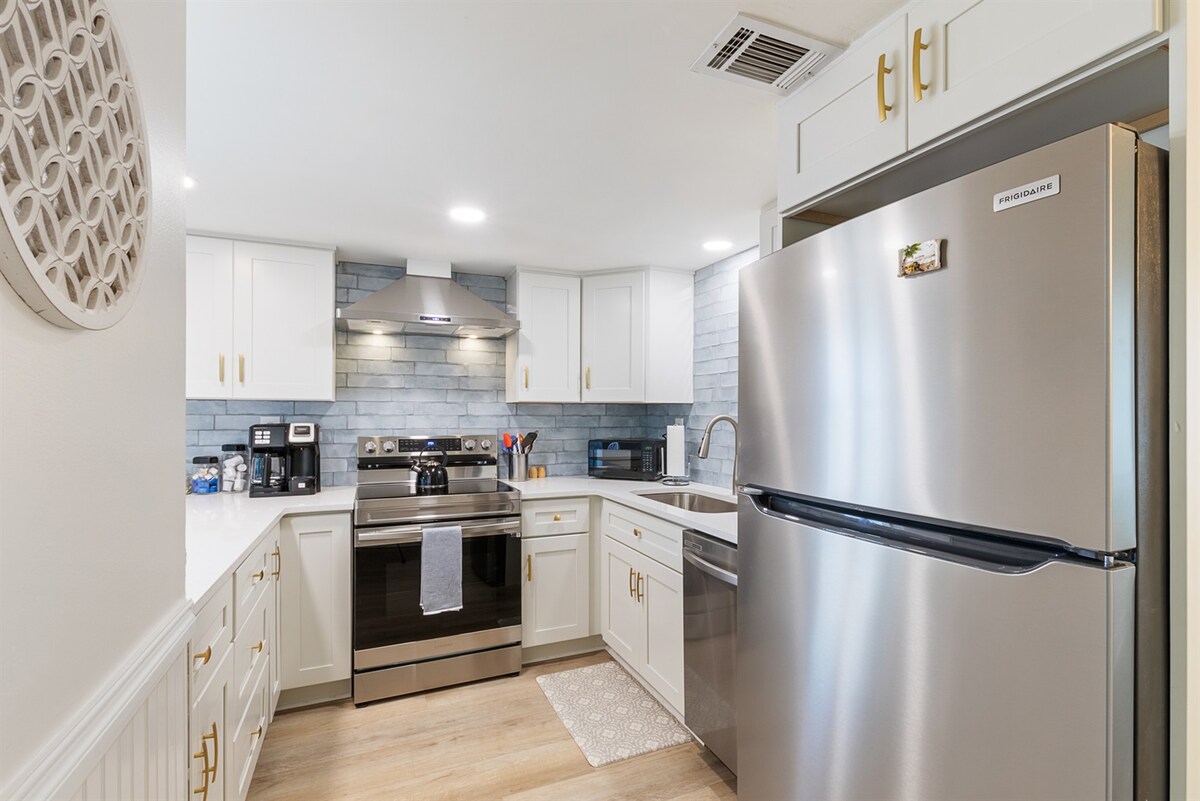 A 2 minutos a pie de la playa • ¡Las mascotas se hospedan gratis! Impresionante casa costera en Gulf Shores con acceso a una playa privada al otro lado de la calle. A poca distancia a pie de restaurantes, tiendas y del famoso The Hangout. Cuenta con una decoración costera de alta gama, colchones de lujo, televisores inteligentes en todas las habitaciones, una cocina totalmente equipada y artículos de playa Tommy Bahama.