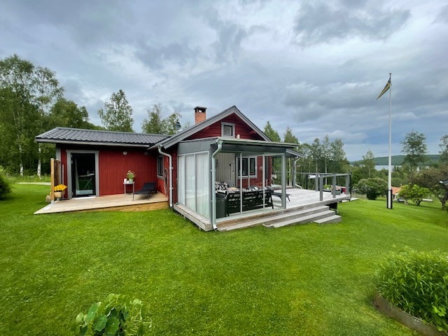 Welcome to tranquil Västanvik in the heart of Dalarna and this charming cottage, just 5 km from central Leksand. Here, you're greeted by a stunning view of Lake Siljan. On the enclosed porch, enjoy dinners from early spring to late fall, thanks to infrared heating. Inside, the fireplace is prepared for you to light, adding maximum coziness. Firewood is included! This is the perfect starting point for your excursions. Bed linen and towels are provided, and electric car charging is available.