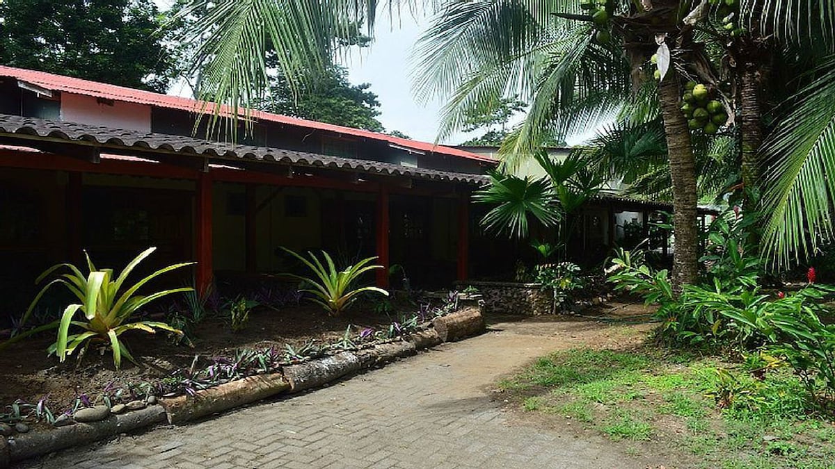 La casa de Marilyn construida con las características propias del zona , es muy fresca acogedora un lugar donde llegas y no te quieres ir , contamos 4 habitaciones : 2 en primer piso con aire acondicionado, las 2 habitaciones superior no lo necesitan , tu despertar será sonido de las aves y monos Congo , tenemos un rancho y además un sendero que en 7 min te lleva a una de las playas más hermosa llamada playa chiquita.