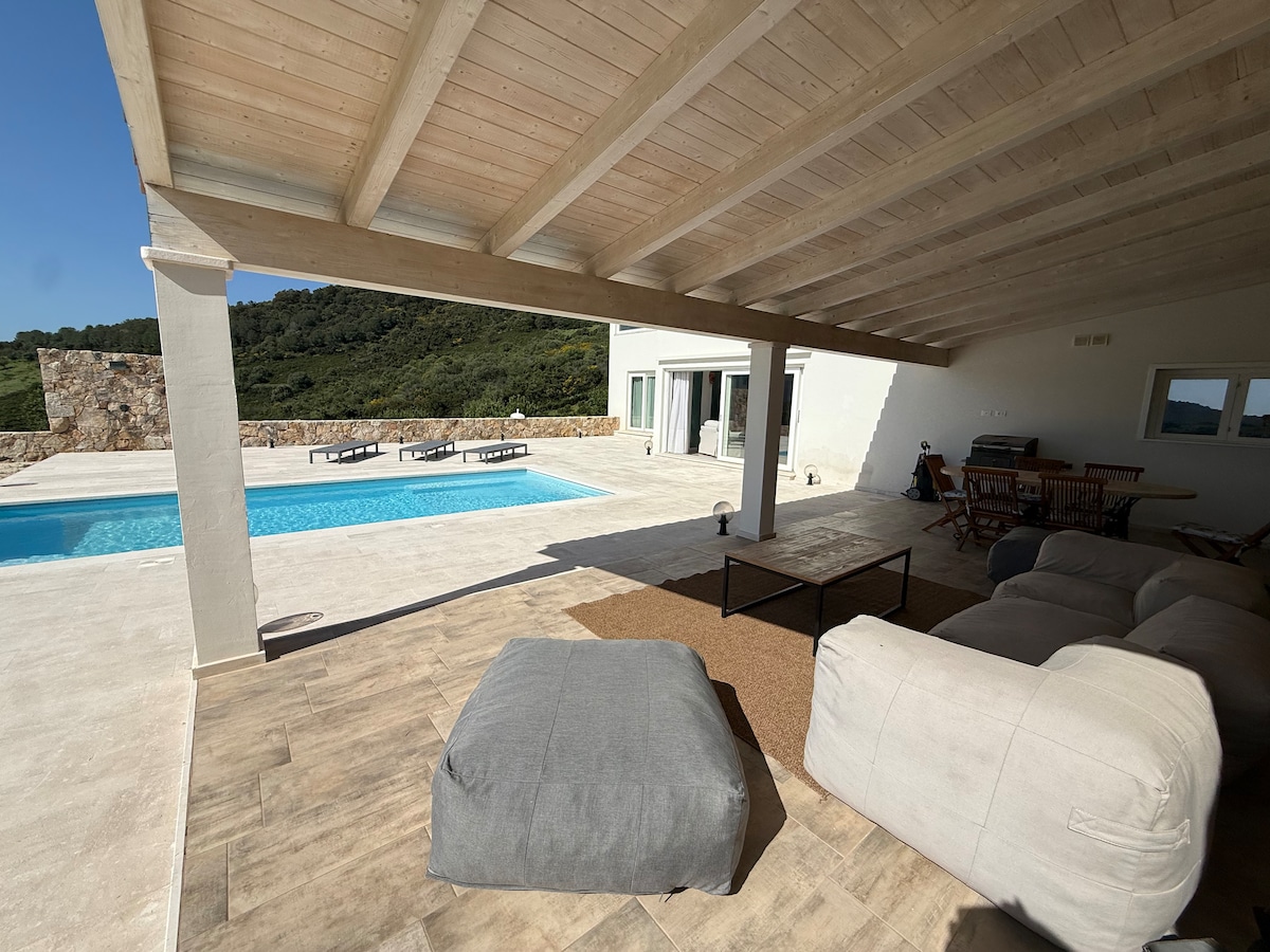 Villa con piscina a 300 metros de la playa con vistas al mar, estacionamiento, jardín privado y piscina, wifi y aire acondicionado en todas las habitaciones, finamente amueblada por dentro y por fuera. Está equipado con lavavajillas, lavadora, licuadora, exprimidor, microondas, hervidor de agua, tostadora, cafetera y máquina de capuchino, parrilla, horno ventilado y secador de pelo en cada baño. Está inmerso en un oasis de paz y es muy fresco porque está constantemente acariciado por la brisa marina.