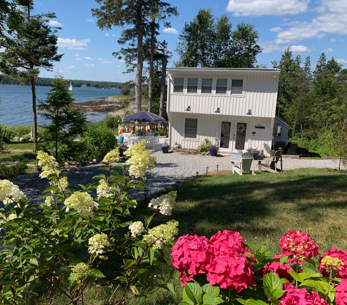 Casa de huéspedes abierta y luminosa de cuatro estaciones con fantásticas vistas a Jones Cove y al mar abierto en la hermosa South Bristol, Maine. La casa de huéspedes ofrece privacidad e independencia. La planta superior tiene un espacio abierto con cocina, zona de dormitorio con cama tamaño queen y baño. La planta baja cuenta con escritorio, TV inteligente, zona de estar y puertas francesas que dan a un patio de piedra. Incluye generador Kohler, wifi de fibra óptica, parrilla al aire libre y chimenea. El agua es de marea. El propietario vive en la propiedad (a 150 pies de la casa de huéspedes).