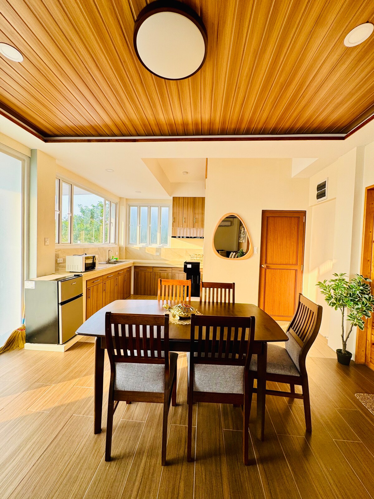 Enjoy exclusive use of the entire place (124 sqm). Free parking slots included. Designed for couples and families, this stylish and spacious fully air-conditioned penthouse offers beautiful views of the ocean, hills, and countryside. 🌴 Just 5 to 10 mins drive from public beach, restaurants, hospital, pharmacy, 7-Eleven, malls, meat shop, fish market, grocery, and public market. 🏠 Modern & Stylish – Instaqrammable sleek interiors. 🍳 Full Kitchen – Complete cookware for your cozy stay.