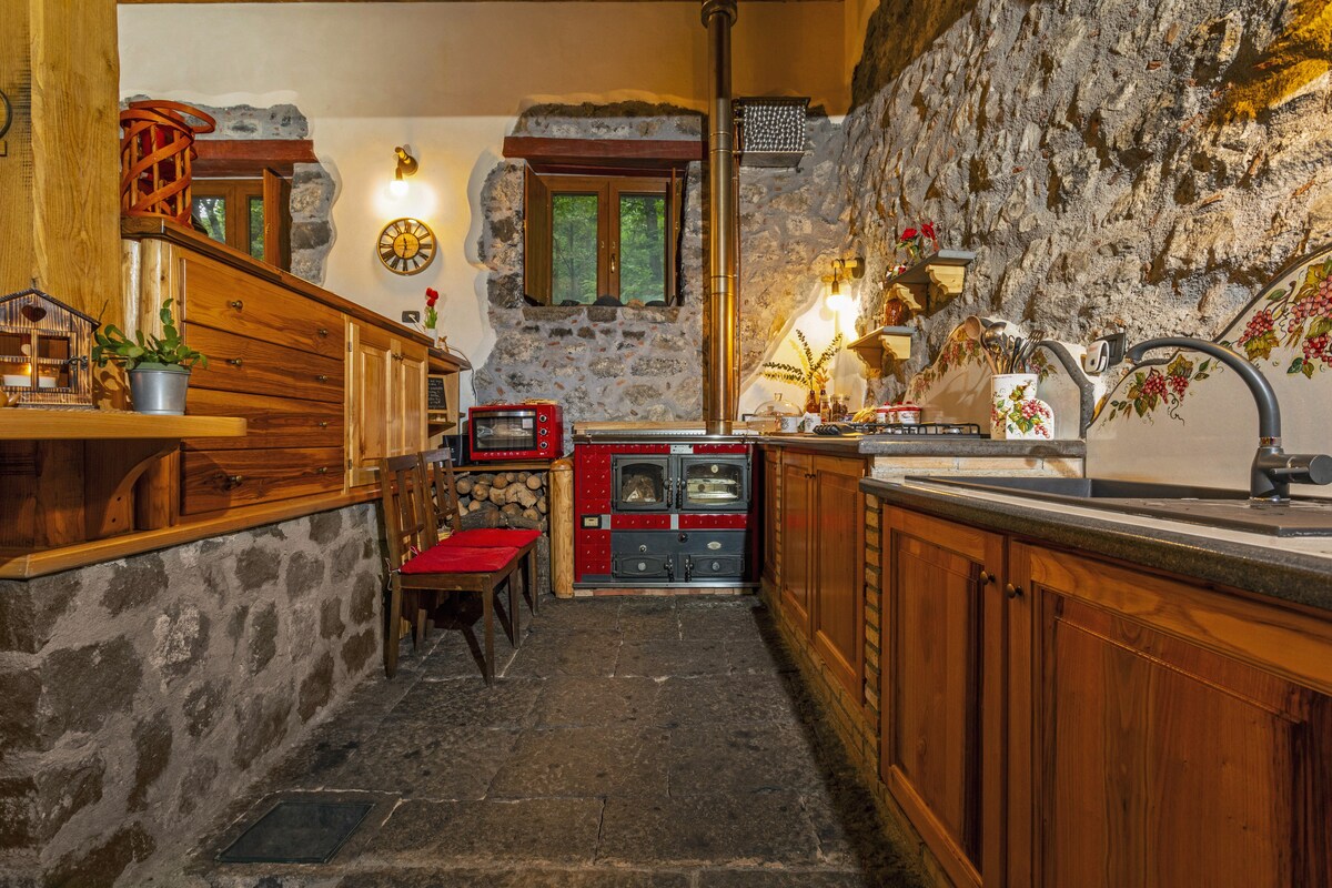 Situado en el Parque del Etna, en la vertiente norte a 1.150 metros de altitud. Ideal para sus vacaciones de verano e invierno en total relax y tranquilidad. Rodeado de naturaleza entre bosques de castaños, robles y pinos. La "Casa u Parmentu "originalmente una piedra de molino, hoy se ha convertido en un confortable y acogedor chalet de montaña.