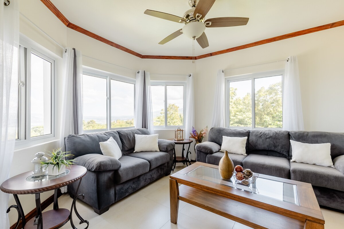 Apartamento espacioso de 1 dormitorio recientemente renovado con vistas espectaculares al mar Caribe. Ubicado en una colina empinada, a 7 minutos a pie del centro de la ciudad y de la playa Harmony, a 25 minutos a pie de la cueva del Dr. y a 5 minutos en coche del aeropuerto. El apartamento cuenta con aire acondicionado solo en el dormitorio y ventilador de techo en la sala de estar. Otra opción para dormir es un sofá cama extraíble. Estamos en proceso de reemplazar las piezas necesarias para nuestro lavavajillas y horno, sin embargo, aún no podemos obtenerlas en la isla.