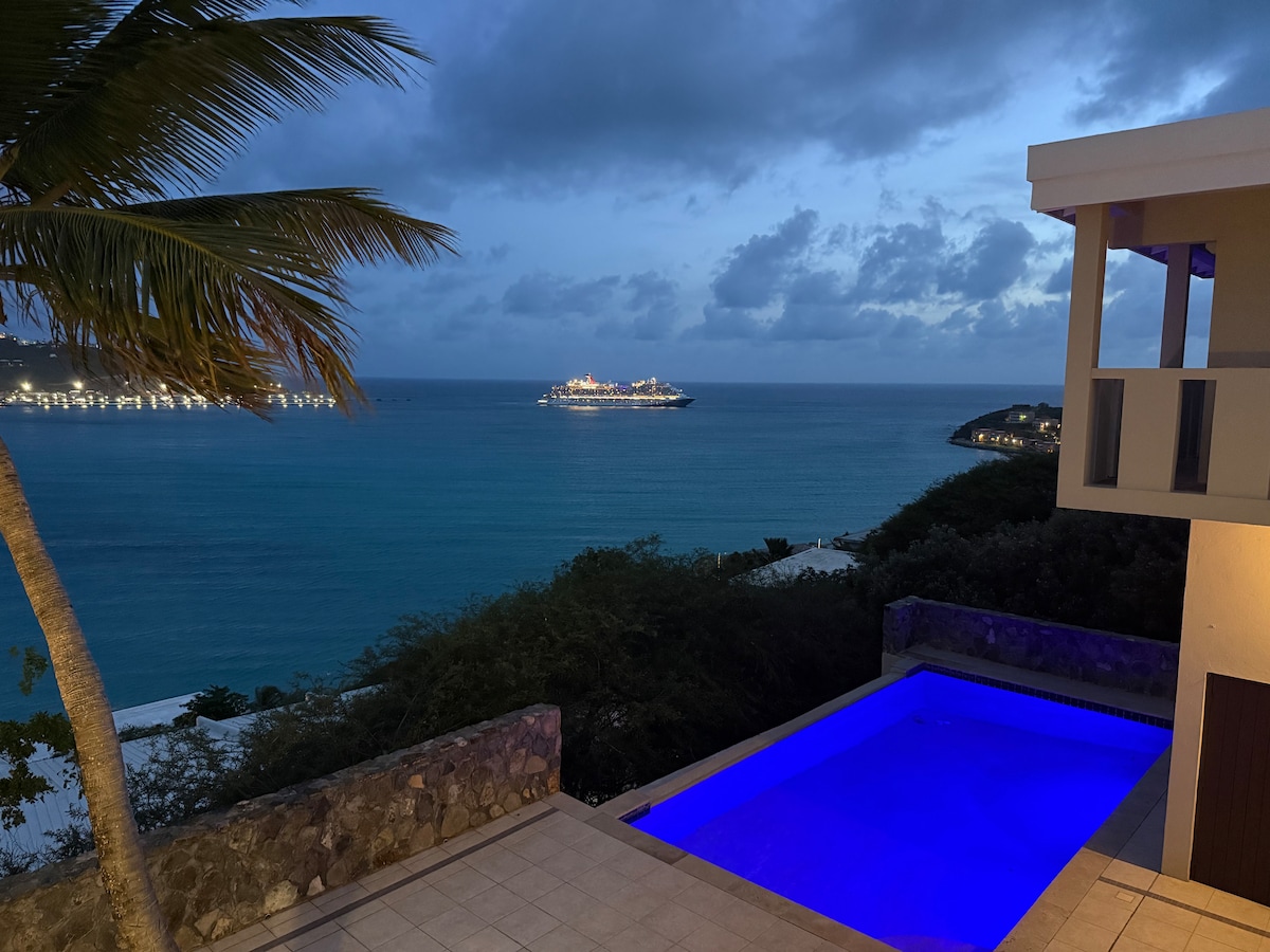 Despiértate con impresionantes vistas panorámicas de Philipsburg y Great Bay. Disfruta de tu café matutino mientras los cruceros se deslizan hacia el puerto, todo mientras te empapas de la refrescante brisa del océano. Esta propiedad céntrica te sitúa a pocos minutos de la vibrante escena comercial de Philipsburg, supermercados locales, restaurantes y algunas de las mejores playas de la isla.