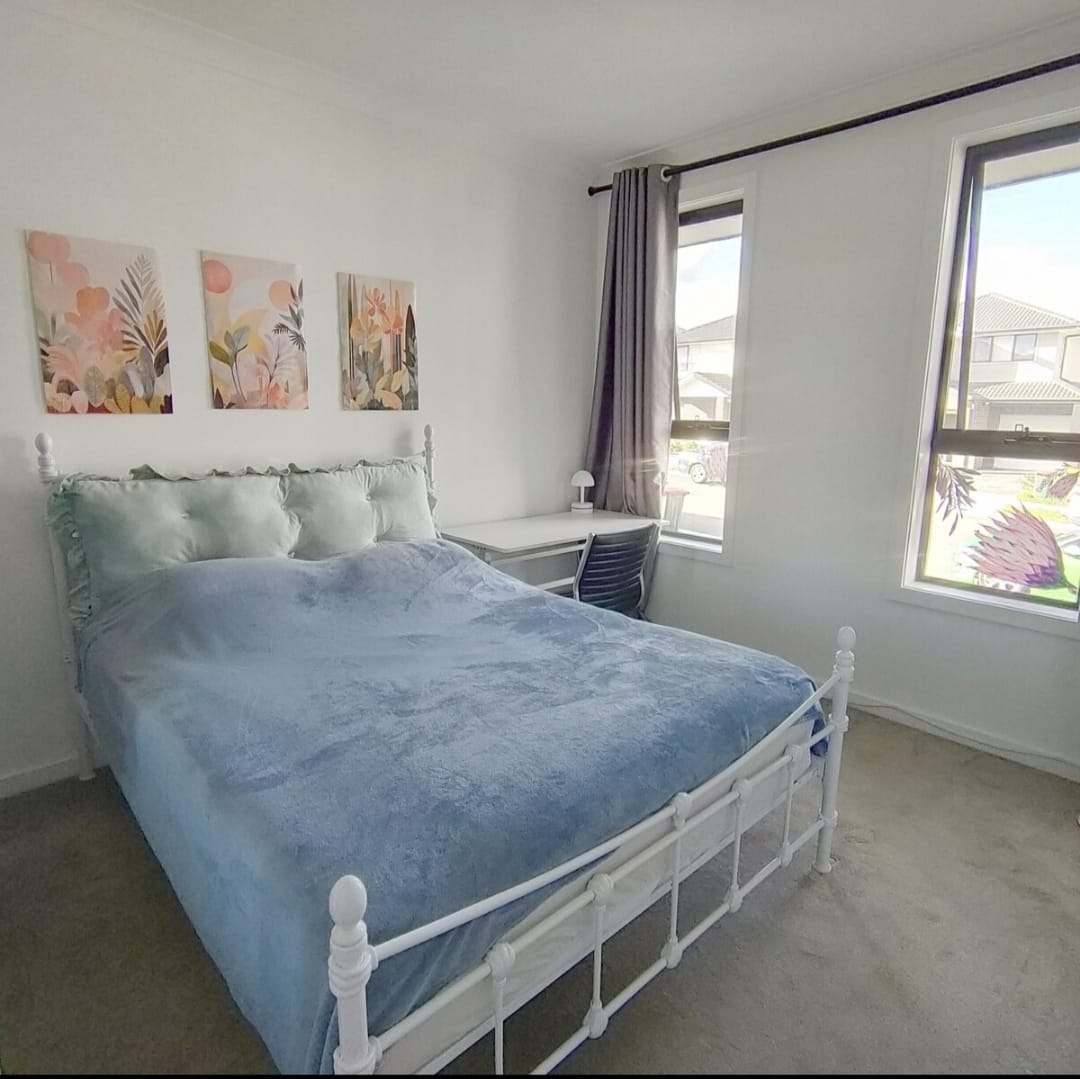 - Cerca de una casa nueva en una calle segura y tranquila - 2 minutos en coche/10 minutos a pie del centro comercial Leppington Village (Woolworths, restaurantes, etc.) y parada de autobús (una parada hasta la estación de tren) - A 4 minutos en coche de Coles Willowdale, restaurantes, etc. - Registro de entrada autónomo a través de cerradura digital. - El dormitorio se puede cerrar con llave y cuenta con escritorio de altura ajustable, silla, lámpara, cortinas opacas, ventilador, calefacción, manta eléctrica, edredón, almohadas y edredón adicionales, calcetines de interior, etc. - El baño y el aseo están separados justo al lado de este dormitorio.