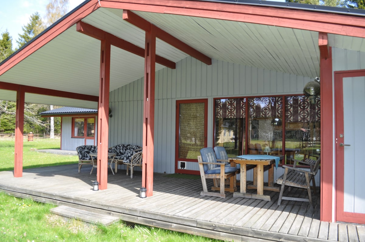 Arkitektritat sommarhus (inflyttning 2017) med utsikt över havet. Kök med alla bekvämligheter och tvättstuga med tvättmaskin/torktumlare. Wifi (fiber). Utekök med grill. Tv-rum med stor TV. Ett badrum med dusch/badkar och ett med endast toalett. Attefallshus med gästrum (dubbelsäng och våningssäng för 3 barn, dock inget badrum). Gästhus med dubbelsäng och utedusch Cyklar, surfbräda och SUP finns att låna. OBS: lakan + handdukar ingår inte. Fler bilder kan skickas.