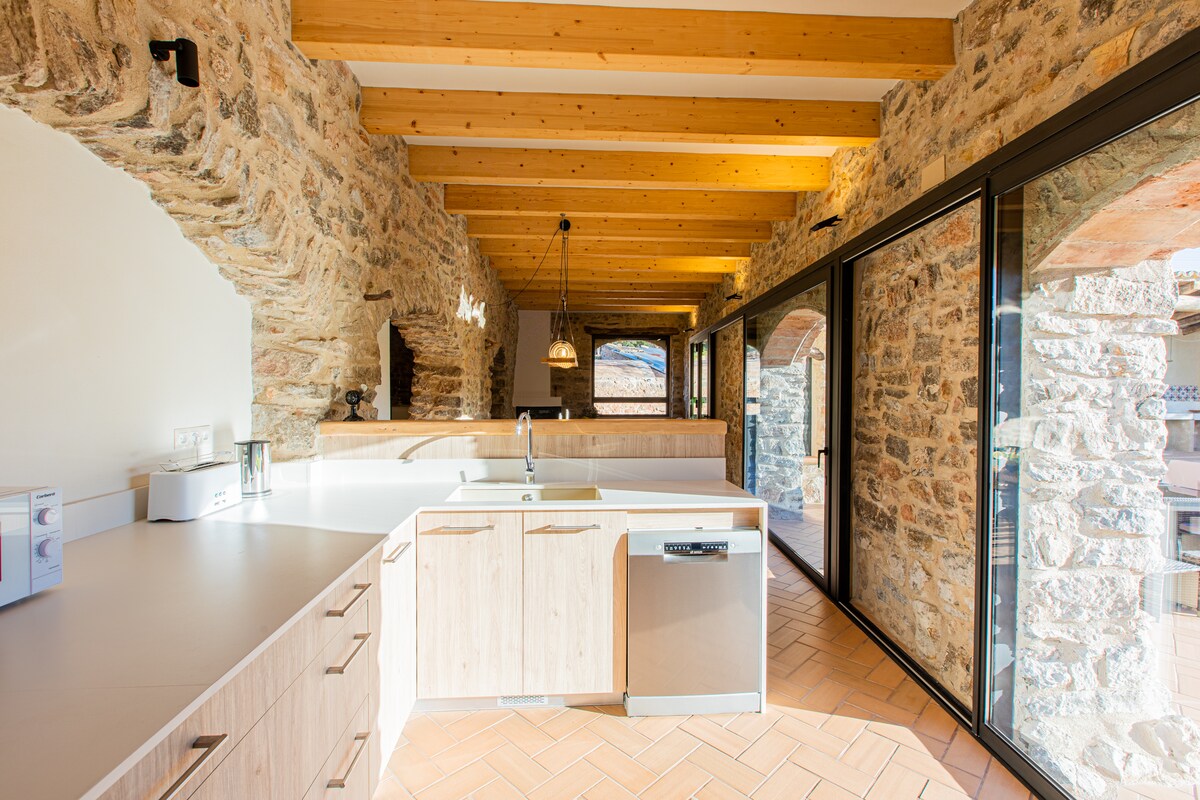 Inglés: Transformamos Cal Joanet, una antigua casa de pastor en el pueblo, en una casa acogedora y funcional, preservando el carácter original (paredes de piedra, vigas de madera). Tendrás toda la casa para ti y todas las comodidades. Catalán: Hemos transformado Cal Joanet, una antigua casa de pastor en el pueblo, en una casa acogedora y funcional, preservando su carácter original (paredes de piedra, vigas de madera). Tendrás toda la casa para ti y todas las comodidades.