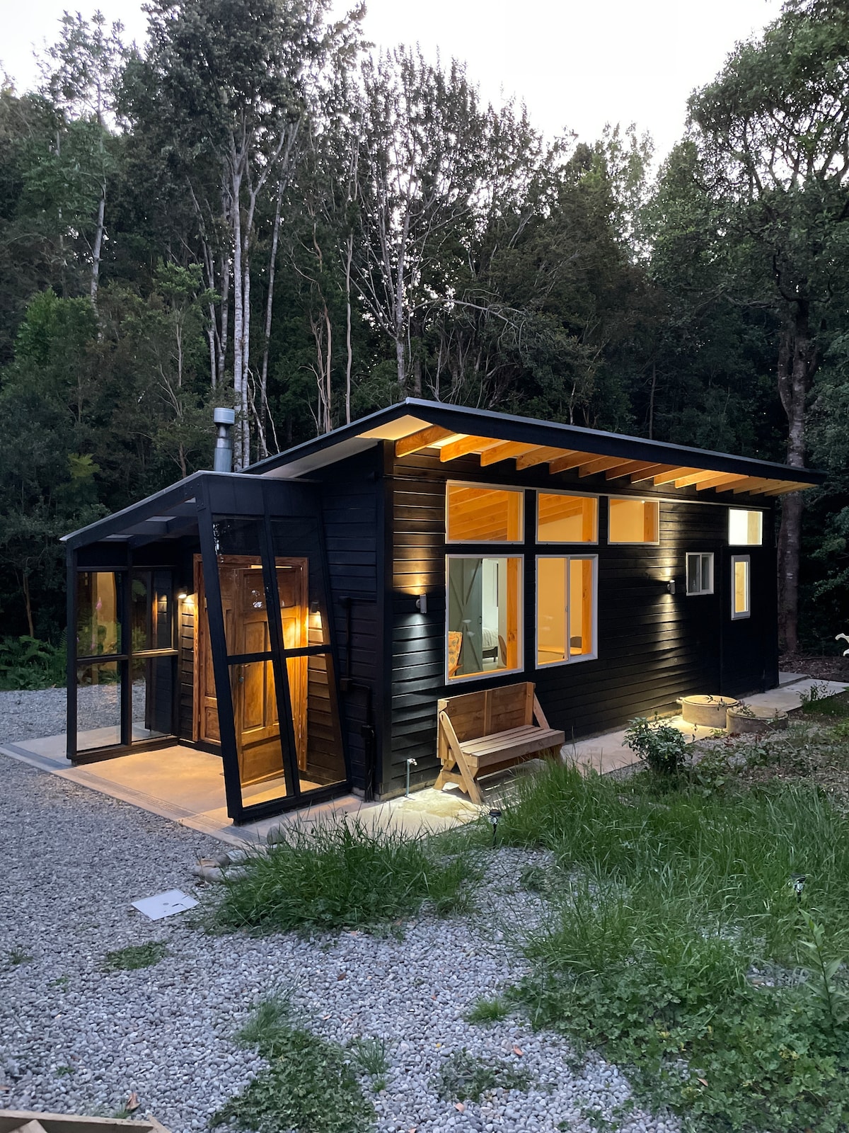 Acogedora TINY HOUSE, donde encontrarás todo lo necesario para poder relajarte, completamente equipada, con estacionamiento propio, inmersa en Bosque Nativo. A 17 minutos del centro de Puerto Varas, 11 minutos de centro comercial Doña Ema, a 1 kilómetro de mini Market y Cafetería. A puertas de los grandes centros turísticos de la región.