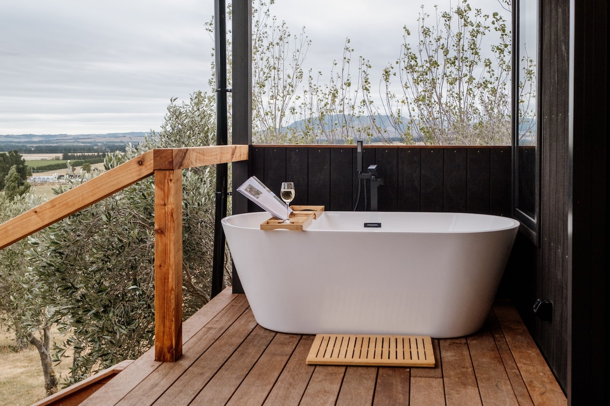 Nuestra Wine Pod, una hermosa casa pequeña, se encuentra enclavada de forma privada en la bodega y viñedo Georges Road, con vistas panorámicas a través de las vides a las colinas y los alpes más allá. Disfruta del jacuzzi bajo las estrellas, relájate en la terraza, disfruta de una cata de vinos de cortesía en la bodega, utiliza nuestras bicicletas de cortesía para explorar la zona, con cocina y barbacoa (trae tus propios suministros o compra comida local de antipasto en nuestra bodega), ropa de cama de lujo, sonido bluetooth y con desayuno incluido.