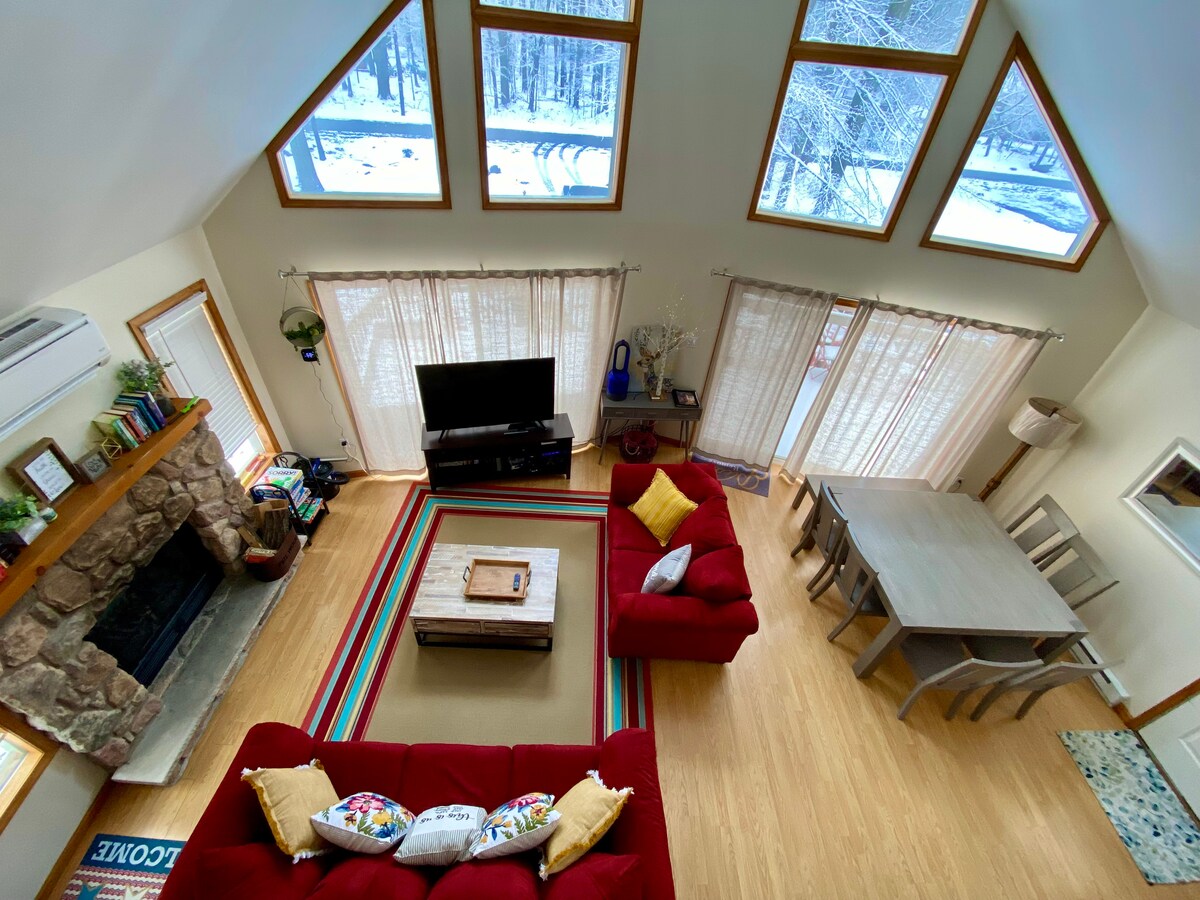 La Casa Poconos es una pequeña y acogedora casa de estilo chalet de dos dormitorios + loft y 1 baño en las montañas Poconos, dentro de la comunidad de Arrowhead Lake. Rústica y pintoresca, pero con toques modernos, la casa es fresca durante el verano y acogedora durante el invierno, y una gran base para la exploración de Poconos. ¡Renovamos el interior y nos hace mucha ilusión compartir nuestro hogar! Por favor, respeta nuestro lugar feliz en el que trabajamos duro. (Lee Acceso para huéspedes, casa dentro de una comunidad que requiere tarifas adicionales)