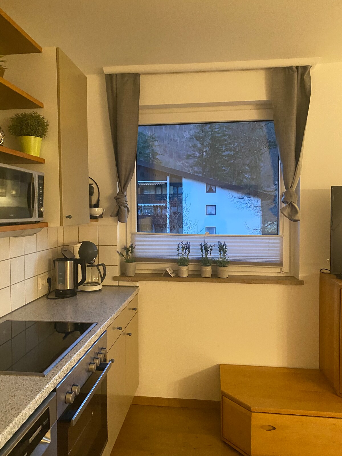 Original tirolés. Casa rural de 250 años cuidadosamente restaurada. Bonito y tranquilo apartamento de dos habitaciones de 42 m² en una ubicación muy céntrica. Apartamento muy bien reformado en una ubicación céntrica en St. Johann en Tirol con un gran jardín de 3000 m². Dormitorio con cama doble (160 cm) y posibilidad de añadir una cama supletoria o una cuna. Sala de estar con cocina integrada totalmente equipada y cómodo asiento para hasta 6 personas. Sofá cama en el salón. Trastero. Cuarto de baño grande con inodoro, ducha y ventana.