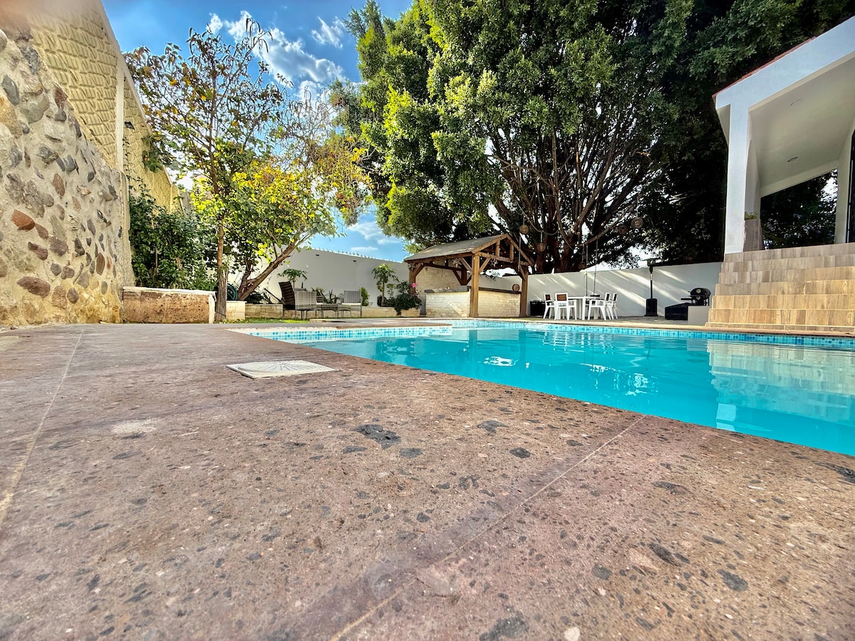 Casa completa, alberca privada 6 x 3 mts 1.5 mts de profundidad con calentador que mantiene el agua a 32° promedio en primavera - verano. Cocina equipada, vasos, platos, cubiertos, horno de micro ondas. Estancia con sala, comedor, sillón columpio con vista al jardín, internet, pantalla smartv de 55". Dos recámaras, baño completó y medio baño compartidos. Asador de carbon.