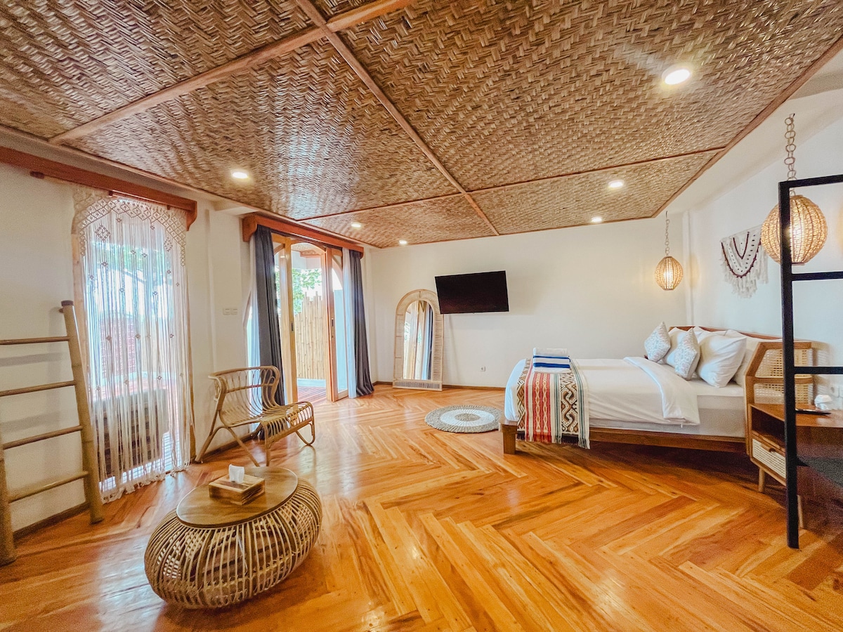 A Bali-inspired 2 floors boutique room hotel in central Lombok featuring a private pool, modern interiors, AC, butler service, high-speed WiFi, and private parking—ideal for digital nomads, business travelers, couples, and long stays. Prime location with direct access to Mataram, 10 minutes to Senggigi, and 30 minutes to Kuta Mandalika. Professionally managed by "Lombok Expert" with 24-hour concierge service.
