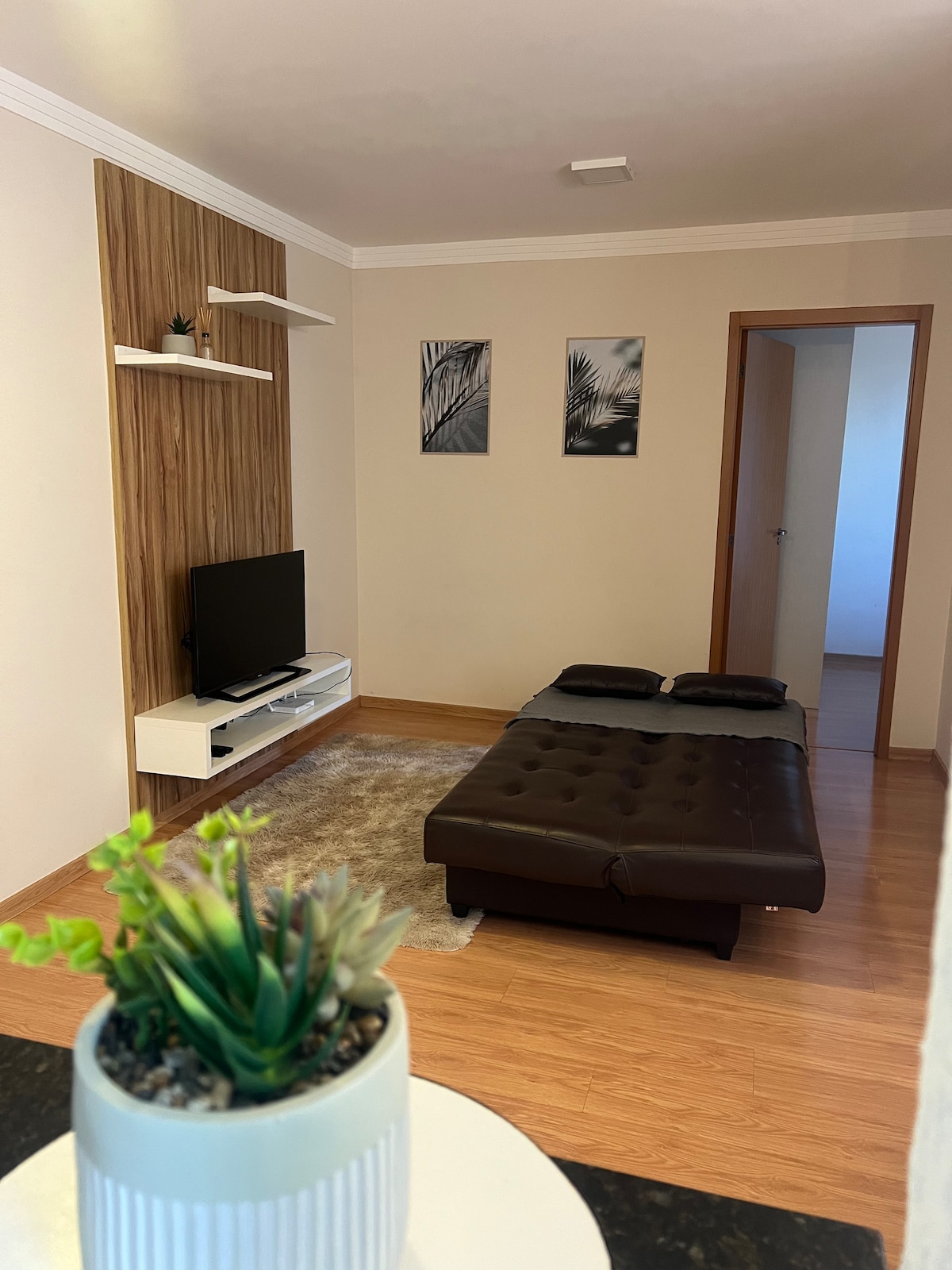Apartamento NUEVO y MODERNO. Situado en el corazón de GLEBA PALHANO, a una cuadra del centro comercial Aurora, supermercado, gimnasio y farmacia. Gleba Palhano es considerada la mejor región de Londrina. El barrio está compuesto por inmuebles de alto estándar. Apartamento: Aire acondicionado en el dormitorio, Smart TV en la sala de estar, WI-FI, una cama doble, sofá cama, nevera, purificador de agua, cocina, horno eléctrico, sandwichera, ollas varias y juego de cubiertos. Ropa de cama y toallas ya incluidas en el alojamiento.
