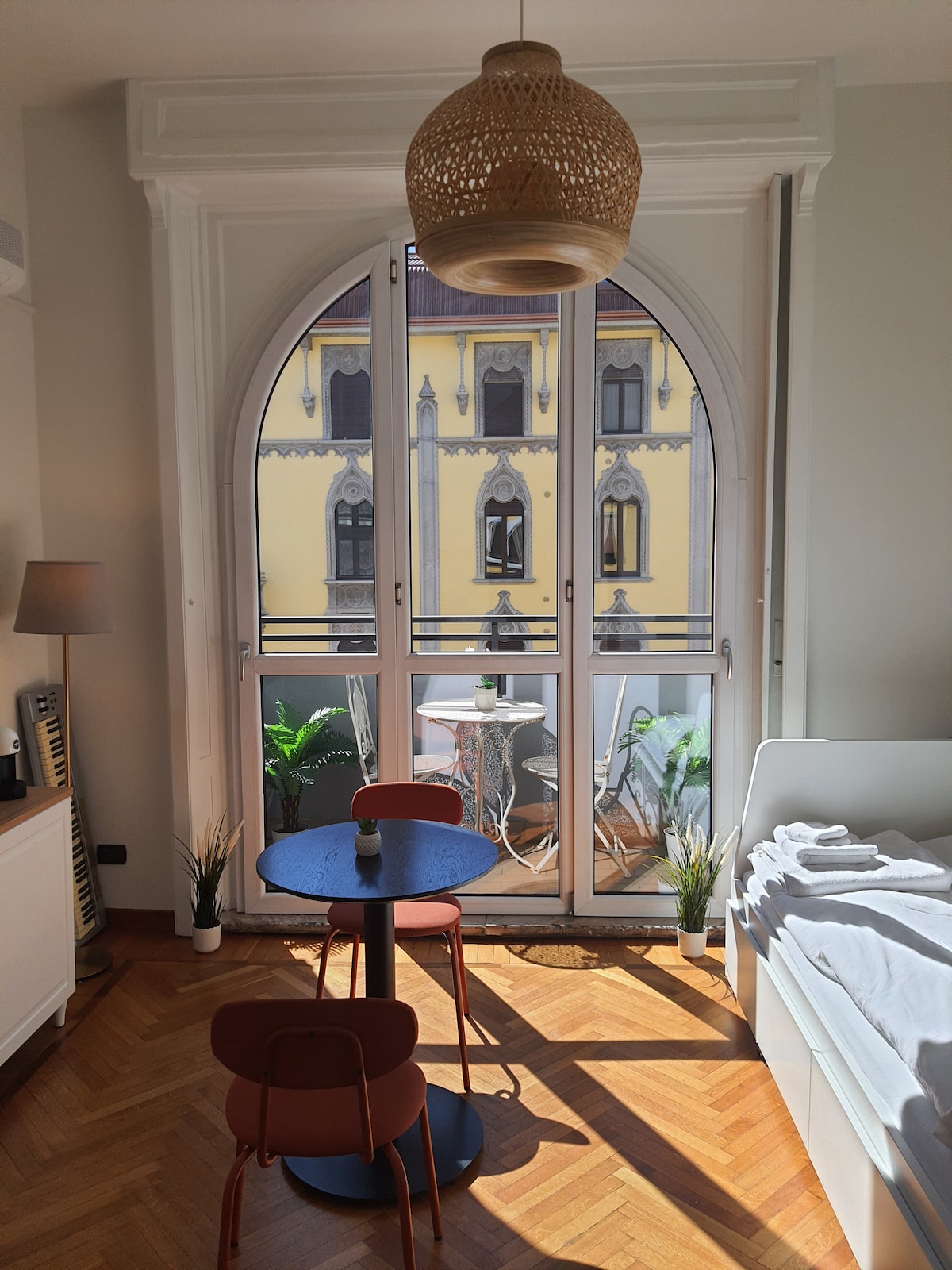 Espacio muy céntrico y estratégicamente ubicado que consta de un dormitorio doble, zona de relajación, baño completo y una encantadora terraza. No cuenta con cocina completa, sino con una nevera pequeña, microondas, hervidor de agua, Nespresso y artículos para el desayuno. A unos pasos de la estación central, cuenta con el metro rojo, tranvías y autobuses, pero también a quince minutos a pie del Duomo. Servicios de todo tipo, restaurantes y tiendas hacen de esta zona multiétnica un lugar animado y dinámico, todo por explorar.