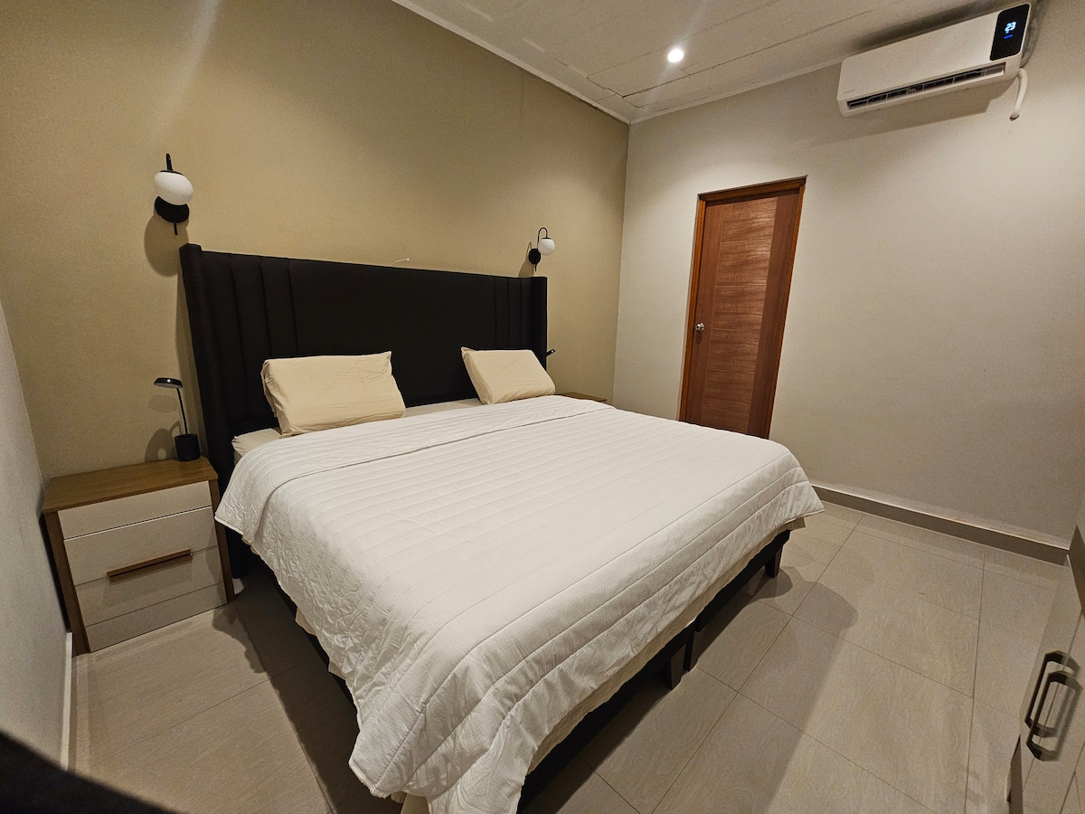 Departamento moderno y funcional en condominio privado, con excelente ventilación natural y vista abierta a la naturaleza. Ideal para estancias largas, trabajo remoto o viajes en pareja y familia. Ubicado en una zona tranquila y segura de Tarapoto.