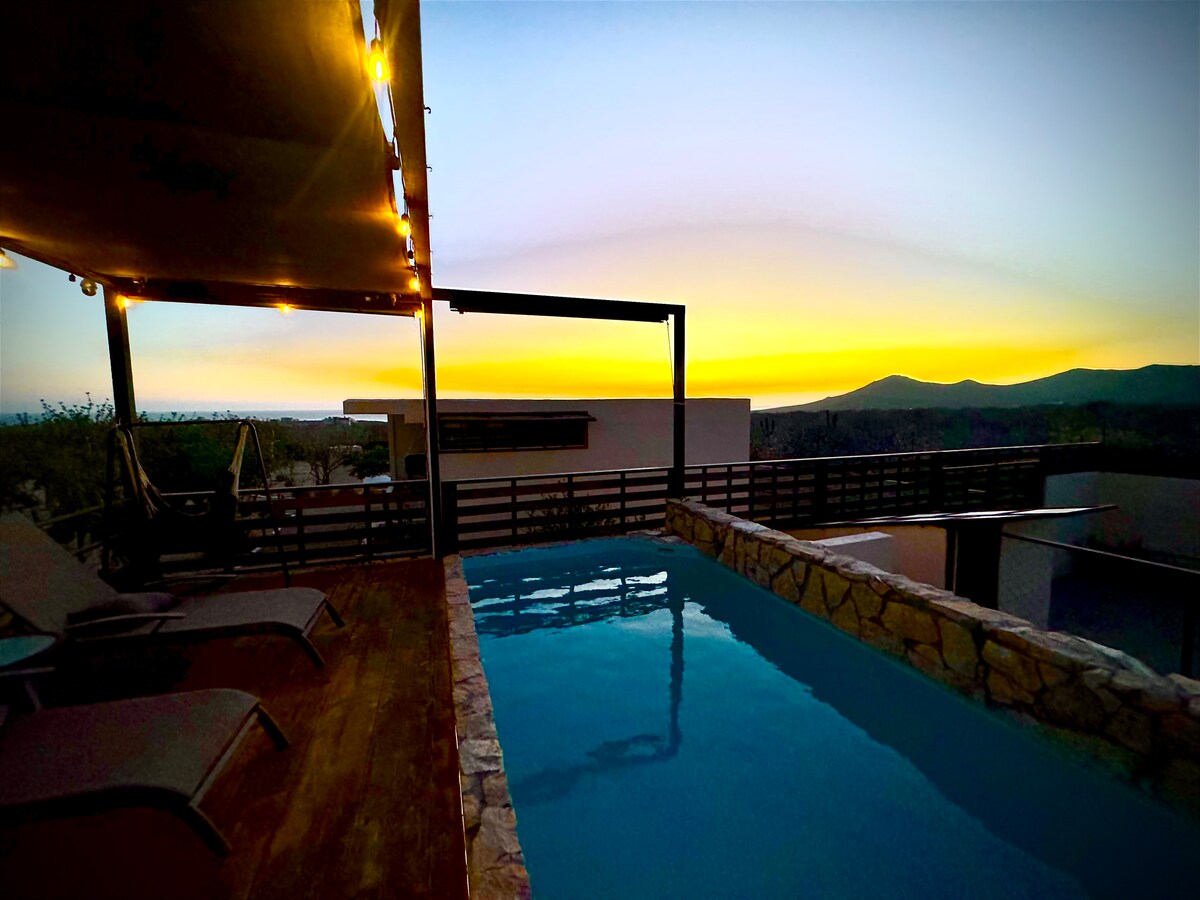 ¡Mi casa es su casa! We are located close to town in one of Cabo's most sought after, safest, gated communities with a private beach that's a 10 minute walk from the house. Enjoy the spacious, recently renovated casita guest house with private entrance & bathroom, perfect for remote working or a quick getaway. Access to the dining room, kitchen & laundry room of the main house included. Enjoy the pool or rooftop terrace with a partial ocean view, perfect for yoga/meditation or a drink at sunset.