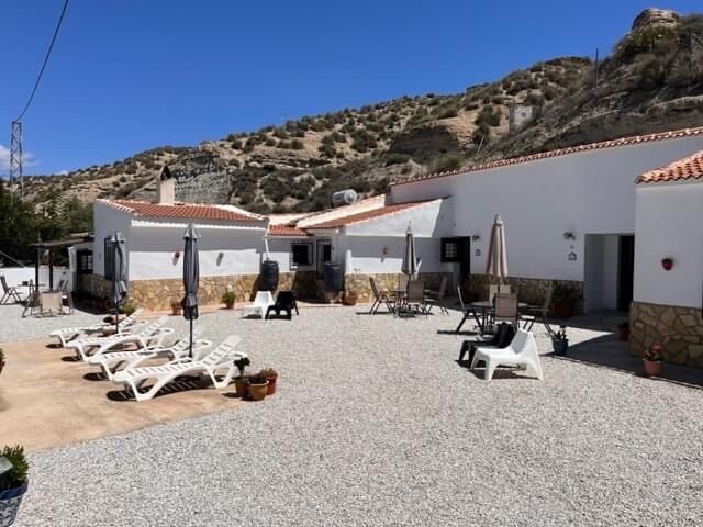 Notre Cueva Aventura vous propose trois hébergements troglodytes : la Cueva Francesca 1/3 personnes (accessible aux personnes à mobilité réduite), la Cueva Lucia 2/5 personnes et la Cueva Emilia 4/7 personnes. La Cueva Francesca (50m2) se compose d'un patio privé et aménagé, d'une pièce de vie (cuisine équipée, canapé creusé, table chaises,tv), d'une grande chambre (1 lit de 180 et 1 lit de 90 ou 3 lits de 90, supplément pour le 3eme lit simple), douche à l'italienne, lavabo, wc. Notre piscine au sel (pas d'allergie, pas d'odeur mais où nous vous remercions pour la stabilité et l’entretien de l’eau de ne pas utiliser de crèmes solaires ) bordée de ses petites cuevas pour abriter votre sieste ainsi que le barbecue et le terrain de pétanque sont à partager. Le tarif comprend le linge de lit (qui est fait à votre arrivée), le linge de toilette, la serviette de piscine, le ménage en fin de séjour et l'électricité. La caractéristique bio-climatique de la grotte la climatise naturellement. Aéroport le plus proche : Grenade, et il est nécessaire d’être véhiculé. Si mauvais temps : Netflix 😉 Les petits plus pour ne pas être pris au dépourvu : liquide vaisselle, éponge, torchons, eau fraîche, café (dosettes et café et filtres), thé, sucre, condiments de base (huile, vinaigre, sel, poivre) …..et petits bonbons ✨✨✨