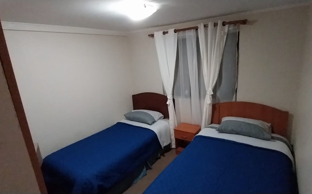 Departamento en planta baja de dos ambientes, con entrada independiente, cocina comedor y dormitorio con cama de dos plazas, baño con ducha de agua caliente, ubicada a 3 cuadras del terminal de buses, 5 cuadras del centro de la ciudad a 8 km del aeropuerto y locomoción colectiva a la puerta