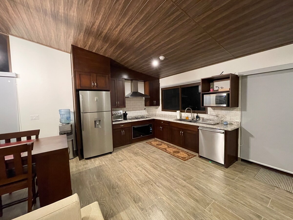 Luxurious one bedroom apartment with incredible view from above to town at CASA EJECUTIVA BOQUETE. A full kitchen, 1.5 bathrooms, 2 king sized beds, 1 queen bed and section to entertain guests. It has a full wrap around balcony and is extremely secure, with the only entrance being a single heavy oak door. Fast primary internet connection (~100mbps), backup internet connection, solar panels, and water tanks on site. We never lose water or power. No stairs for this apartment.