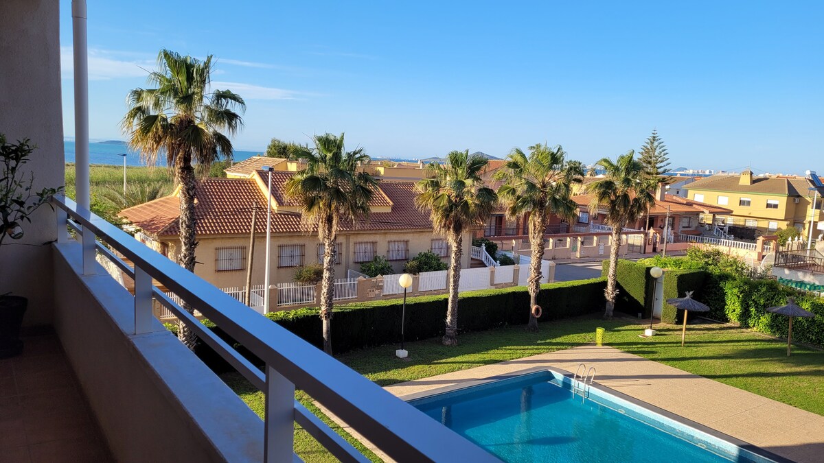 This modern, newly renovated ground floor apartment is located in the quaint complex ‘Apartmentos Jardin’ in Islas Menores/Mar de Cristal. 100m walking distance from the beach. The apartment consists of 2 spacious bedrooms a newly renovated bathroom with walk in shower, a spacious, open plan fully equipped kitchen & lounge/diner. There is a large private front terrace with pool view, for all day sunshine & sunbathing. Whether as a family or a couple relax at this apartment in the pool or beach