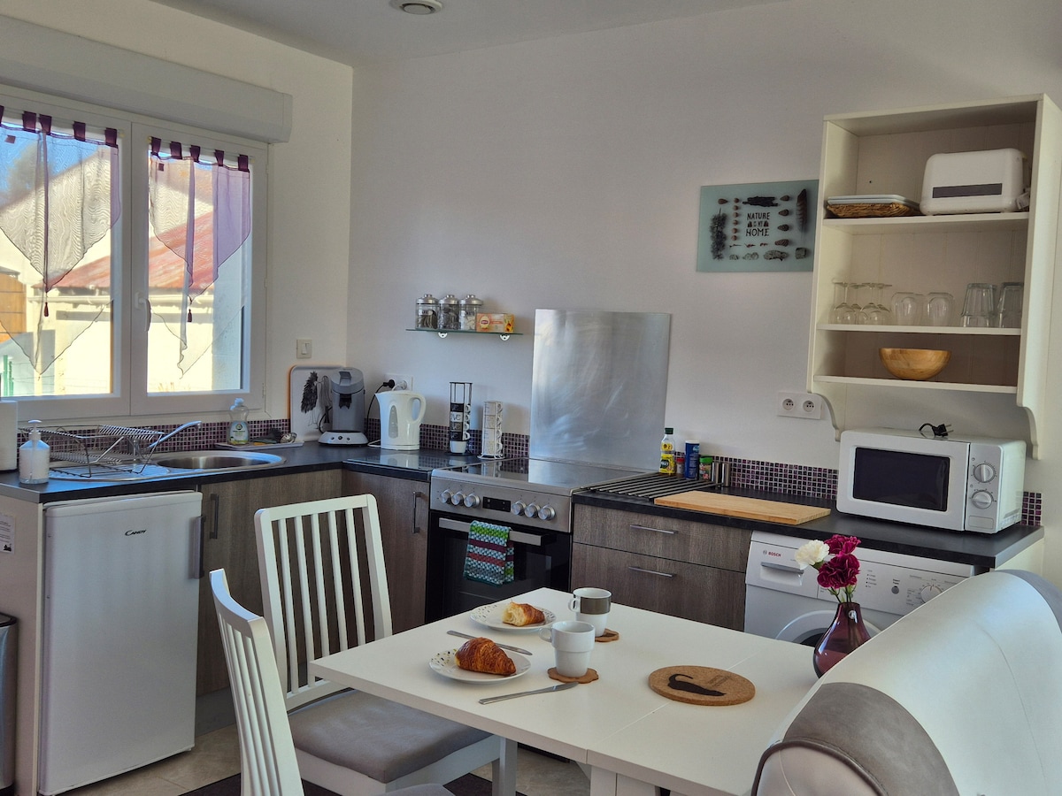 Venez vous ressourcer et vous retrouver seul ou en duo dans ce cocon de 80m2 entièrement rénové, situé au cœur du joli village ancien de Gensac en Gironde, avec une vue imprenable sur la vallée où vous pourrez admirer le soleil couchant. Vous serez conquis par son charme suranné, sa déco atypique et soignée et son confort incomparable. Un petit-déjeuner "à la française" vous est offert pour votre première nuit !