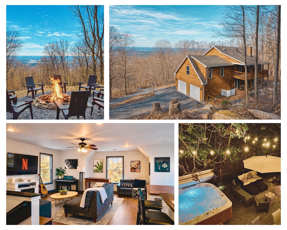 Imagina despertarte en tu casa de vacaciones privada y cerrada en la montaña, enclavada en la naturaleza, pero a pocos minutos de la historia y la aventura. El nivel superior es tu refugio privado en suite con un cómodo colchón, sábanas magníficas y un baño tipo spa. Acomódate en la acogedora alcoba de lectura y disfruta de las vistas a la montaña. En el nivel principal hay un dormitorio queen accesible, baño completo, cocina, comedor y sala de estar. Relájate en el jacuzzi o en la chimenea y disfruta de las vistas a las montañas y las noches estrelladas.