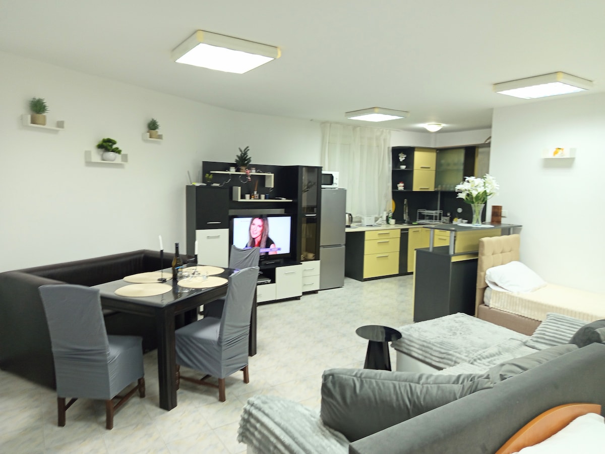 Bienvenido a nuestro acogedor y moderno estudio amueblado en el centro de Pleven. Este alojamiento es un lugar tranquilo y silencioso para tu estancia durante uno o más días. Dispondrás de todo lo que necesitas durante tu estadía. El apartamento está ubicado cerca del hospital Heart and Brain, a solo 700 m. Panorama Pleven y museo histórico de Pleven. ¡Esperamos tu llegada!