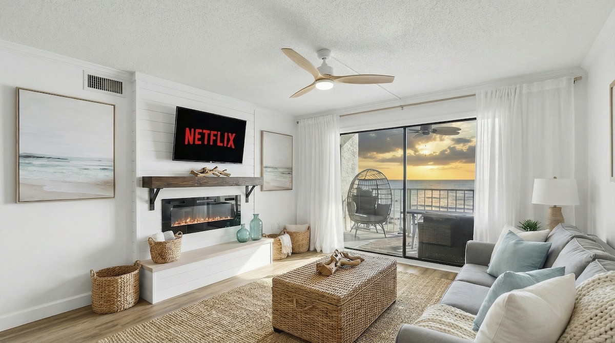 Step onto the balcony of Chasing Rays, and the first thing you notice is the sound: waves folding over white sand three stories below, kids splashing in one of three resort pools, and the clink of glasses from The Sand Bar where cold drinks and great food flow until 10 pm nightly. This is a professionally designed, fully renovated beachfront condo where every detail exists so you can sink into vacation mode the moment you arrive.