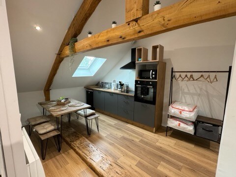 Situado en la «ruta de la bahía» en una zona rural agrícola, nuestro apartamento loft de 50 m² bien equipado ha sido recientemente transformado. Moderno, luminoso y bien aislado, dispone de una gran terraza con vistas al campo, un jardín y un garaje para aparcar sus motos o bicicletas. A 10 minutos en coche del aparcamiento de Le Mont, a 5 minutos a pie de la vía verde y con fácil acceso a la 4 vías, estarás perfectamente situado para explorar nuestra hermosa región.