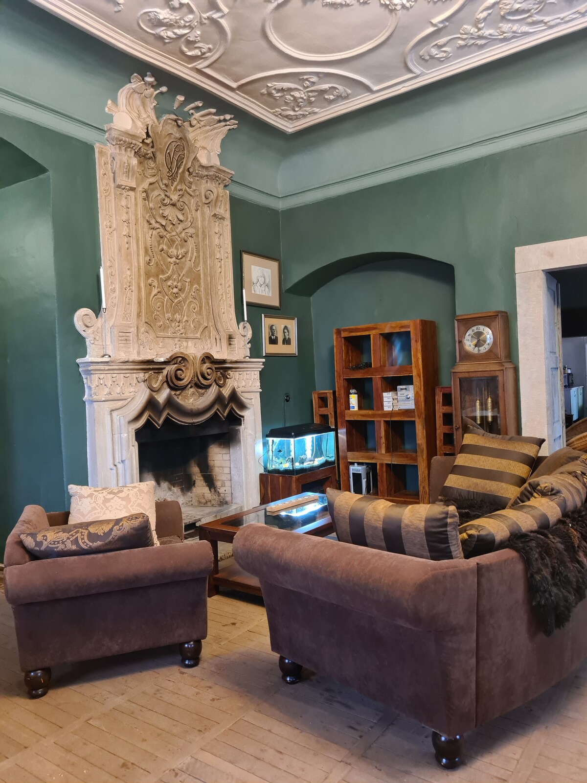 Hay 5 habitaciones dobles, cada una con baño privado, en el segundo piso de este hermoso castillo en alquiler. En la planta baja hay una gran sala de reuniones con una enorme terraza, que es para tu propio uso, así como la sala de billar. El primer piso del castillo es privado, donde se alojan los propietarios. Durante Navidad y Año Nuevo se requiere un mínimo de 2 noches de alquiler.