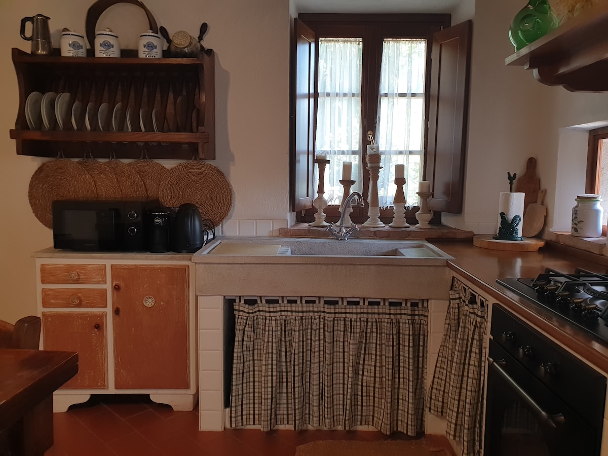 Ad accogliervi sarà un ambiente circondato dai boschi e lo scorrere dell'acqua che regala anche aria fresca in estat,l'ampio terrazzo attrezzato per pranzi e cena all'aperto . Entrando troverete la sala con tavolo ,divano ,tve camino con attigua la cucina fornita di tutto il necessario (macchina per caffè Nespresso, tostapane, bollitore , forno etc). Salendo le scale si arriva alla zona notte dove troverete due camere matrimoniali ed il bagno completo con doccia.