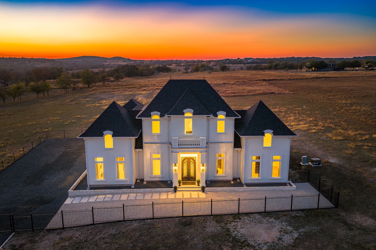 Spotted Sheep Farms se ubica en 8 acres privados y cuenta con dos propiedades separadas. La villa en Spotted Sheep Farms, una casa de estilo italiano de 1.800 pies cuadrados con hermosos acabados y una lujosa suite principal enorme. La propiedad alberga animales y vida silvestre, incluidas alpacas, burros en miniatura y, por supuesto, ¡ovejas con manchas! Es perfecto para una escapada, relajarse, disfrutar de algunas de las mejores bodegas de Texas, las compras de Fredericksburg y la tranquila noche en el jacuzzi.
