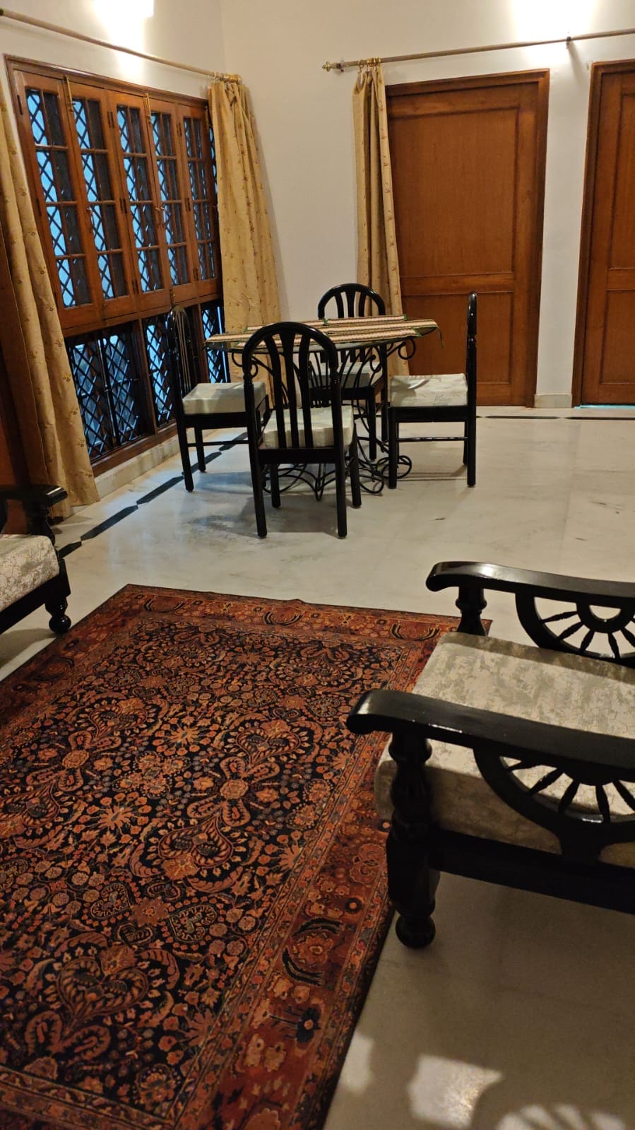 Fair sized house surrounded by beautiful lush lawn. Clean and Beautifully gathered big rooms. Properly placed toiletries. Authentic Indian look coated with the essence of modernity. Free Wi-Fi and safe drinking water. Five big rooms each with a television, a sitting area and private washroom. A common sitting area and dinning space. Equipped kitchen with cook facility( extra charges). We are happy to host parties. We have AC Hall of 1000sqft which we rent at extra charges for parties.