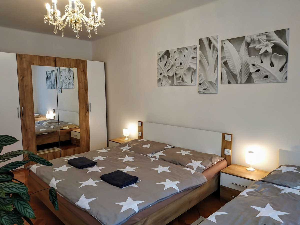 Discover the charm of Děčín in our cozy apartment that makes you feel right at home. The main train station is just 3 minutes away, offering direct connections to Dresden (1 hr) and Prague (1.2 hrs). Buses (2 min) take you to Bohemian Switzerland or Tisá Walls. We provide storage for bikes/strollers; hypermarkets and supermarkets are within 5 min. Parking by the house (paid) or 2 min free. We'll gladly recommend the best our region offers. We look forward to your visit :)