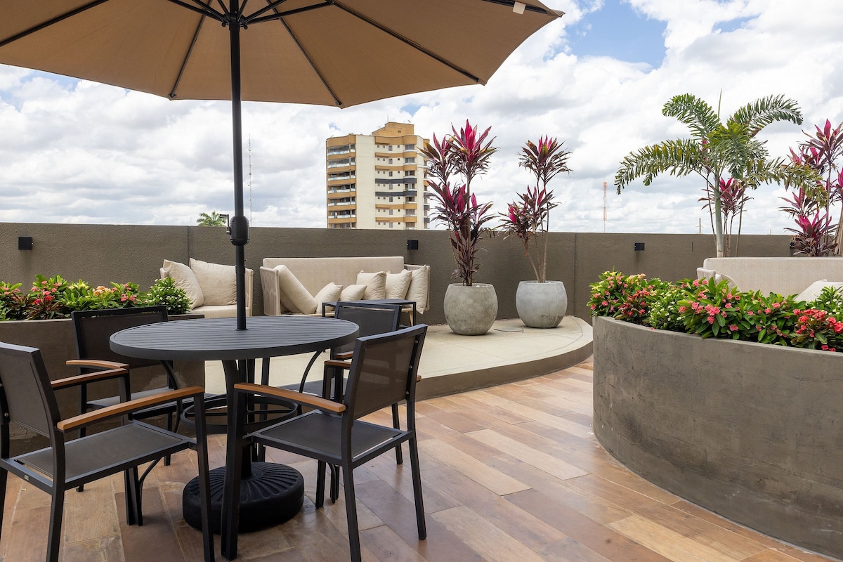Estratégicamente ubicado en Rua Glauber Rocha, 696 - Jardim Paraíso, Empíria LEM te ubica en el corazón de la acción en Luís Eduardo Magalhães. Ya sea por trabajo o por placer, aquí encontrarás comodidad, comodidad y todo lo que necesitas para una estancia increíble. Nuestros apartamentos son modernos y funcionales, equipados con wifi, TV inteligente, aire acondicionado, toallas, ropa de cama completa y una práctica cocina con nevera, microondas, cocina de inducción y utensilios.