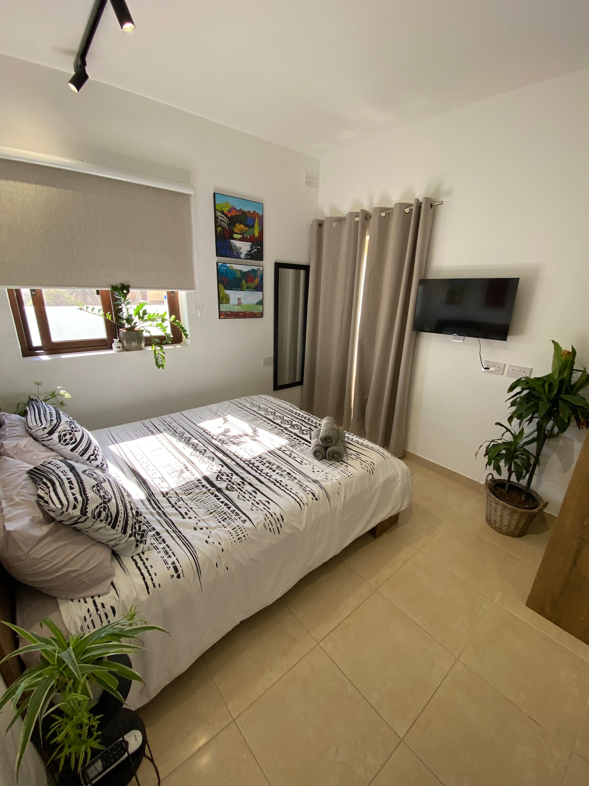 Welcome to our modern and newly-built apartment, located in the heart of Gudja. The apartment is perfectly positioned, with a bus station in front of the apartment. You’ll find all essential services nearby, including a pharmacy, grocery store, hairdresser, stationery shop, and beautician. In front of the apartment, there is a playground for children. The area is peaceful. The apartment is just a 5 mins drive from the airport and 10 mins from the beautiful Pretty Bay beach.