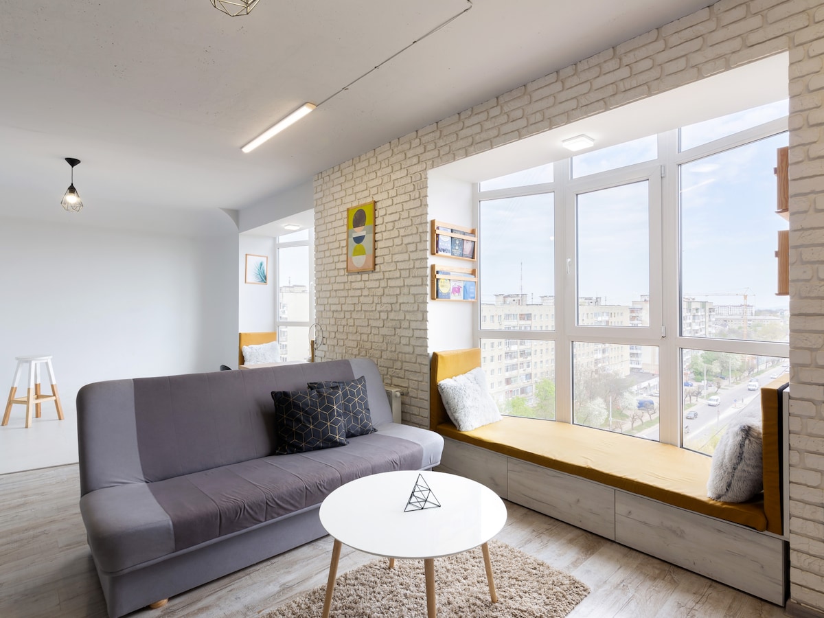 Дизайнерская квартира Лофт в центре Львова с видом