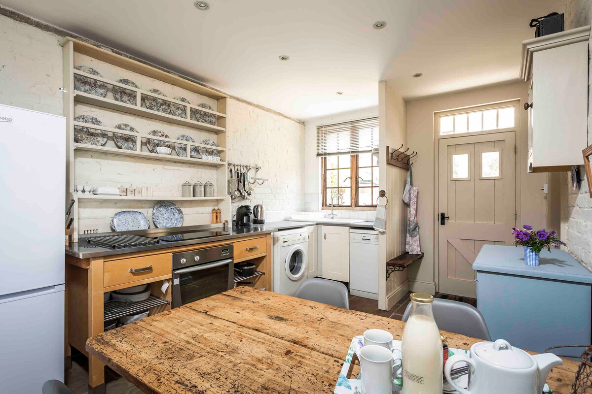 Casa de campo inmaculada de tres dormitorios recientemente renovada, (1 super king en suite, 1 king y 1 twin compartiendo un baño familiar) que data de la década de 1840 en ladrillo y pedernal típico de Dorset. Ubicado al pie de Hambledon Hill, entre Shaftesbury y Blandford, está a solo una milla de la excelente tienda del pueblo y a un paseo fácil por la colina de Hambledon hasta el pub The Cricketer para almorzar o tomar una pinta. Conduce hasta la costa jurásica (40 minutos) para explorar Lulworth Cove o visitar la hermosa playa de Studland o Weymouth.