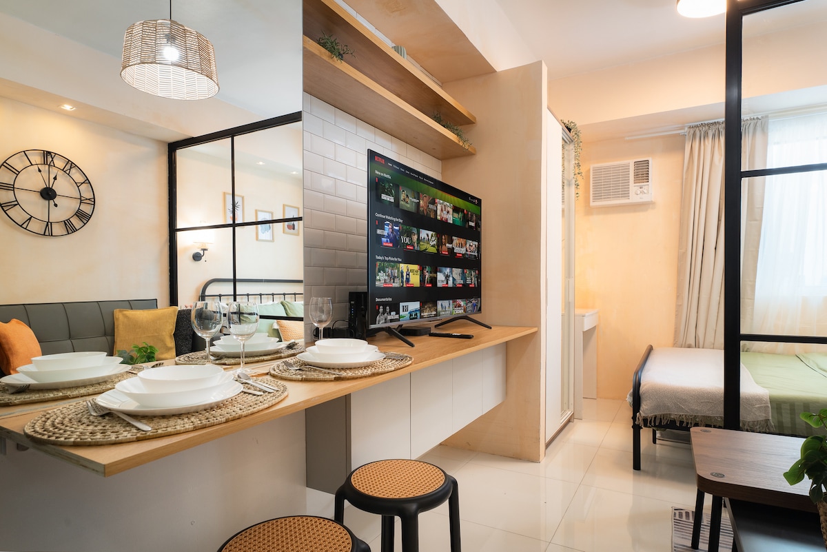 Acogedor estudio en MPlace con TV 4K de 43" cerca de Timog