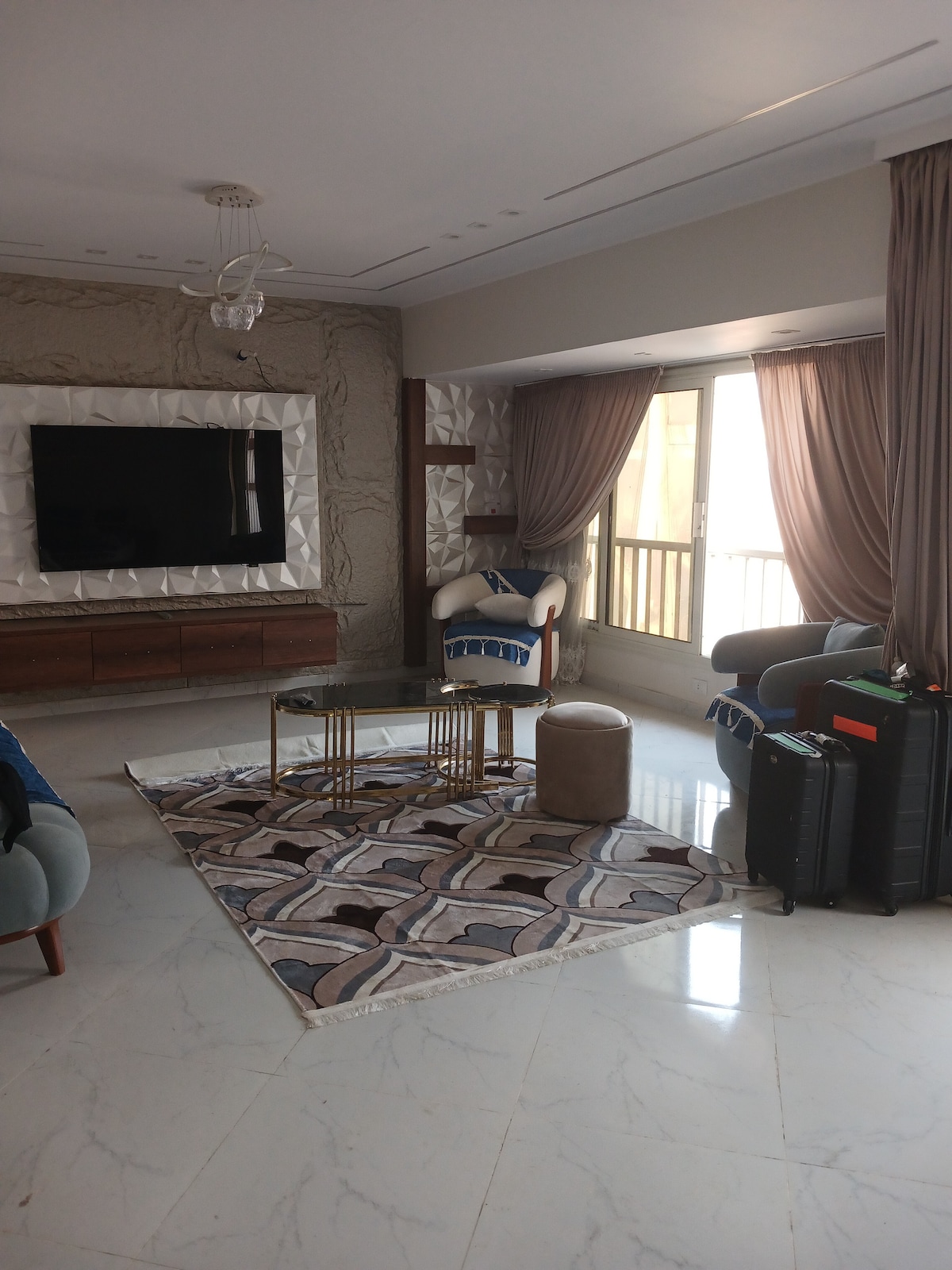 Welcome to unique apartment in Elmaadi area! This elegant apartment features two spacious bedrooms, one with an en suite bathroom, and a generous living room area comprising a dining room, a TV room, and a stylish saloon room. The interior is adorned in slick white, creating a modern and sophisticated ambiance.