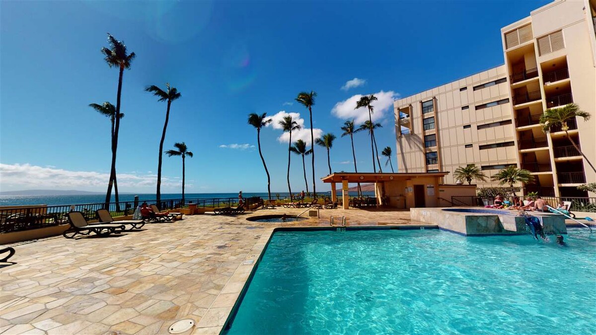 Maui Sunset is a gorgeous Oceanfront property with immaculate landscaping and direct beach access. It's one of the best areas in Kihei for watching the breathtaking Maui sunsets. Enjoy a walk on the beach, a dip in the pool, or soak in the hot tub while looking out over the beautiful Pacific Ocean. Amenities: Large pool, hot tub, sauna, gym, shuffleboards, golf putting green, 6 outdoor grills, and access to tennis courts. The "Activity Desk" is located poolside for booking excursions/rentals.