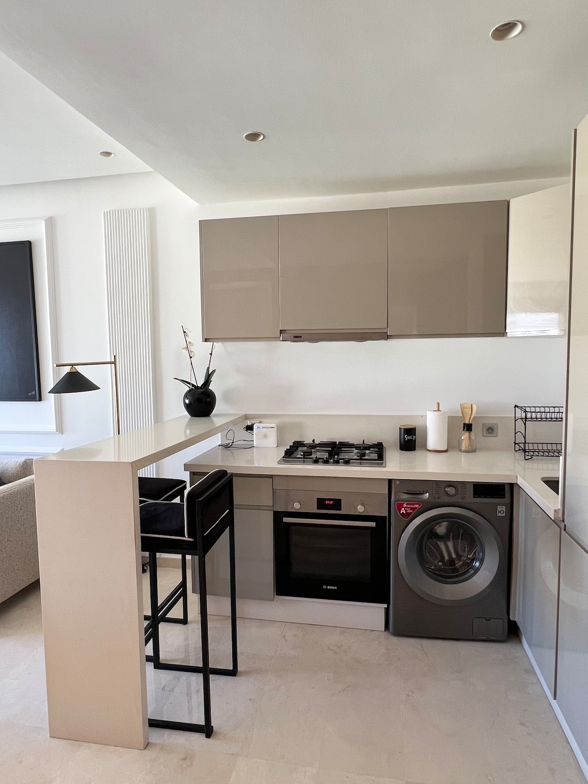 Some apartments are where you set down your bags. Others are where you set down your soul. This hidden Gem is the second. Nestled in the heart of Casablanca’s most vibrant neighborhood — this apartment was designed as an object of desire: an emerald green zellige arch, a raw solid wood coffee table, handcrafted pottery, a blush-beige sofa, and that light that fills every corner. The Morocco you’ve been dreaming of, in contemporary design. Boulevard Zerktouni, steps from the Twin Towers.
